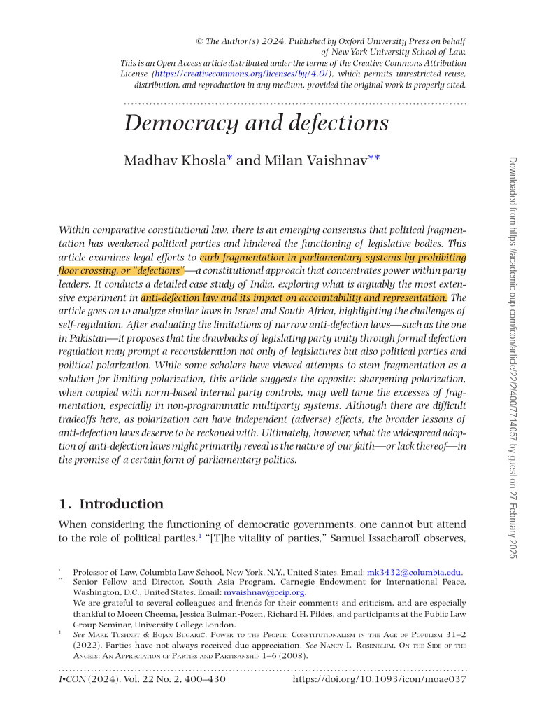 (PDF) POLITICAL DEFECTION AND DEMOCRACY IN INDIA