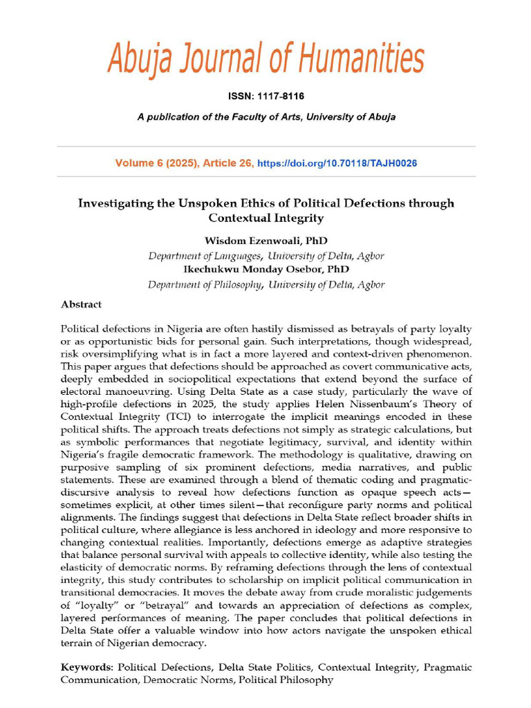 (PDF) Politics of Defection and its Implications on Nigeria’s Democracy