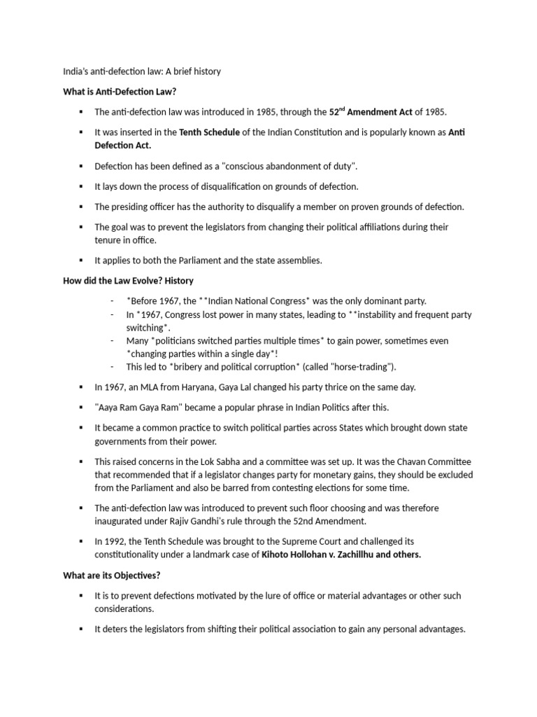 Politics of Defection: What Is The Anti Defection Law? | PDF ...