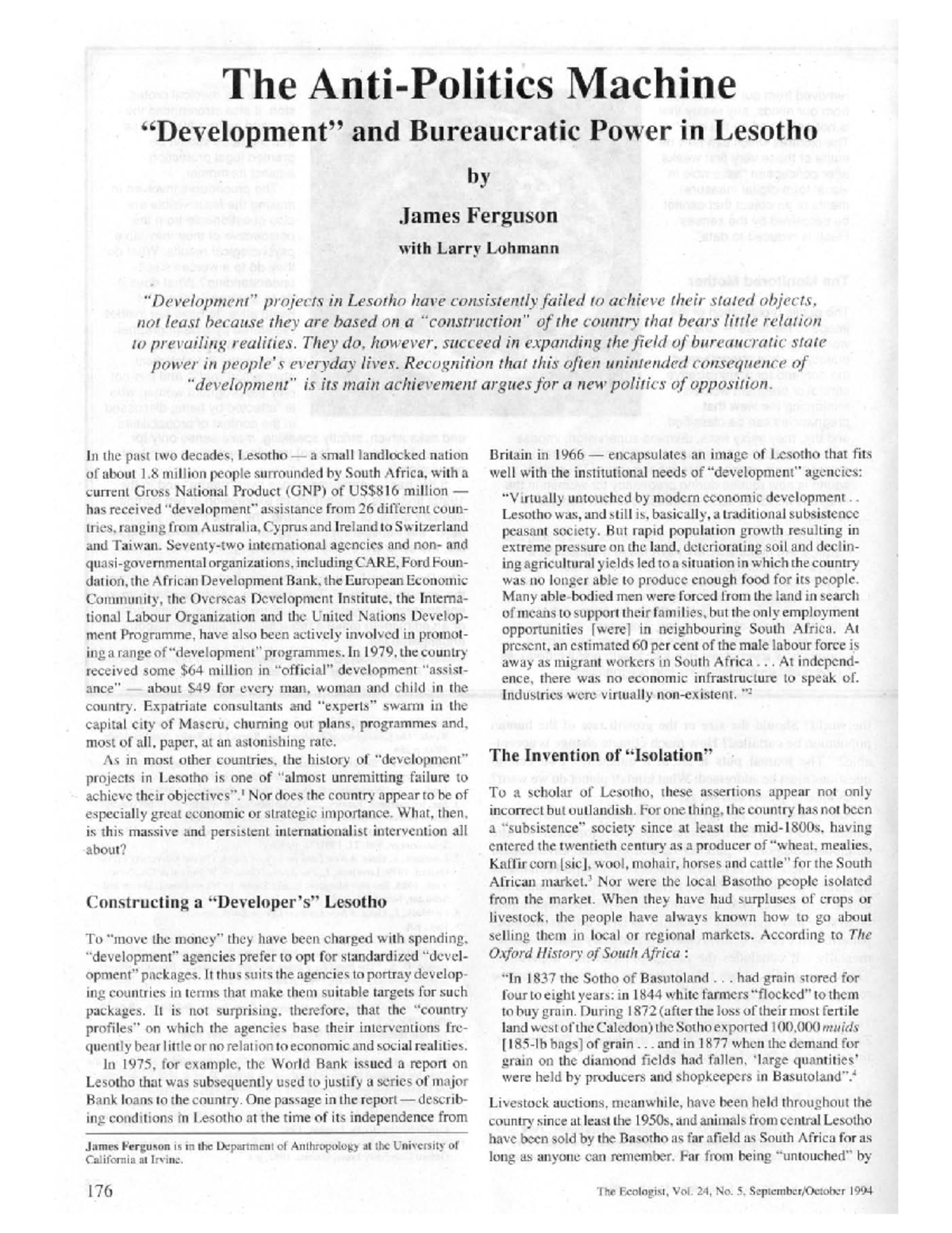 Ferguson, The Anti-Politics Machine - The Anti-Politics Machine The ...