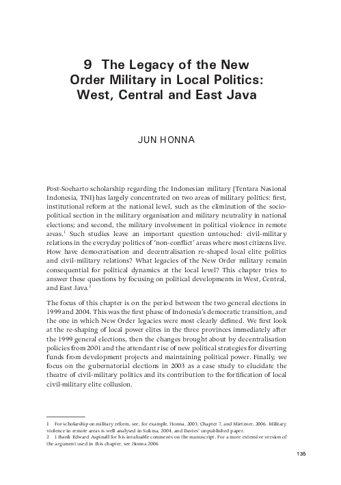 (PDF) The Legacy of the New Order Military in Local Politics: West ...
