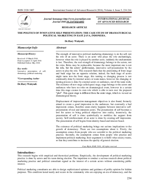 (PDF) THE POLITICS OF INNOVATIVE SELF PRESENTATION: THE CASE STUDY OF ...