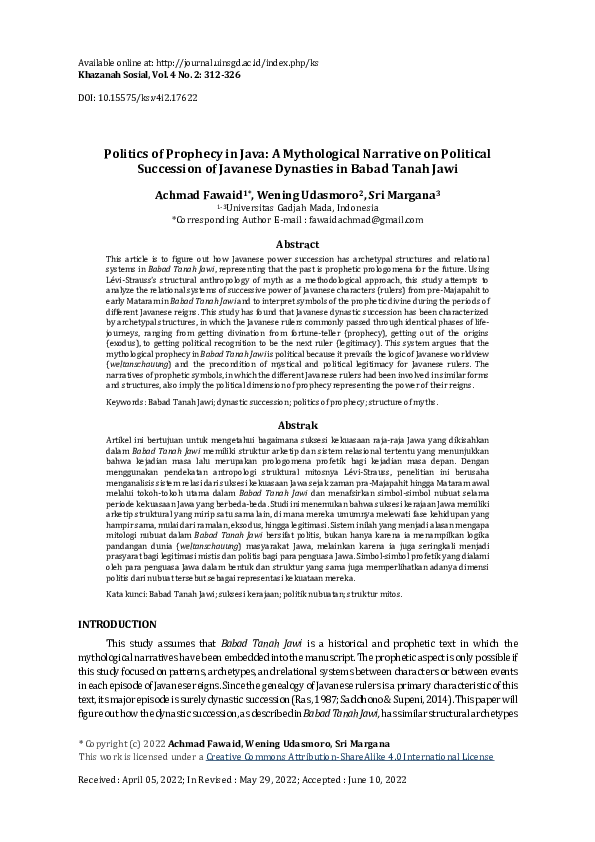 (PDF) Politics of Prophecy in Java: A Mythological Narrative on ...