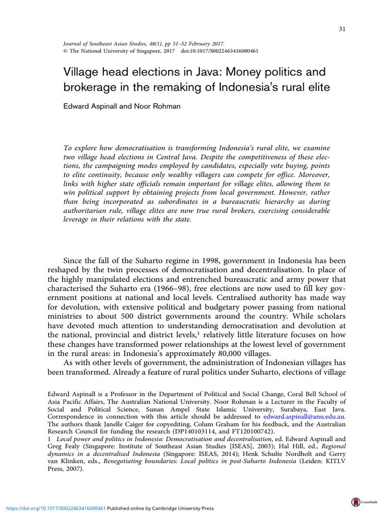 Village Head Elections in Java Money Politics and Brokerage in The ...