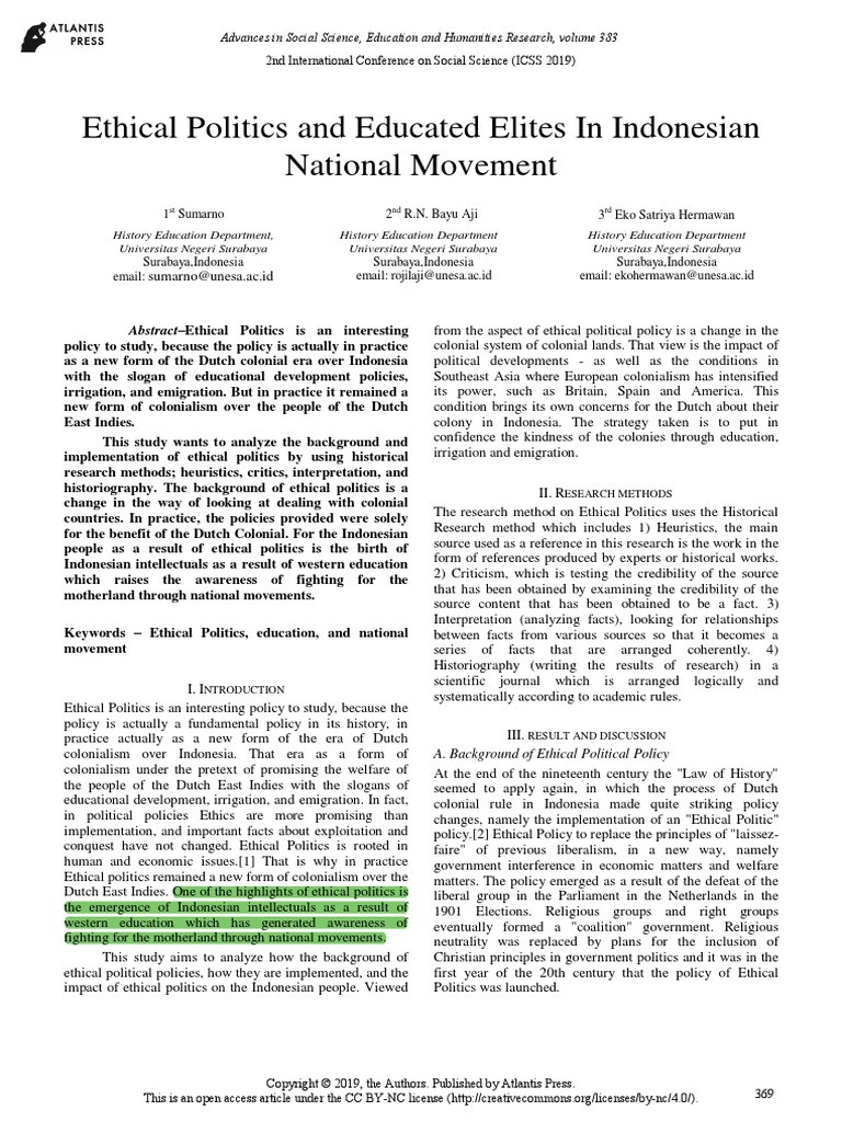 Ethical Politics and Educated Elites in Indonesian National Movement ...
