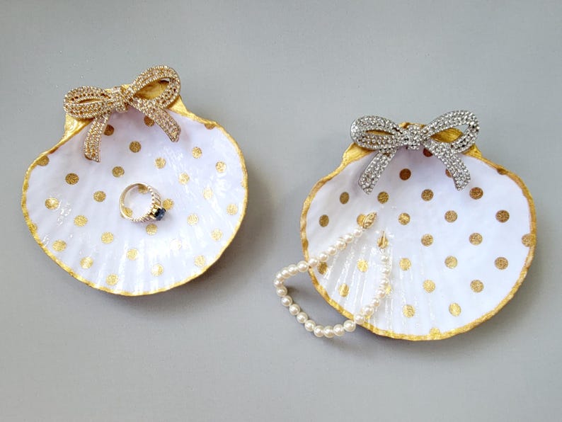 Beach Shell Trinket Dish, Polka Dots Oyster Shell Ring Dish, Bridesmaid ...