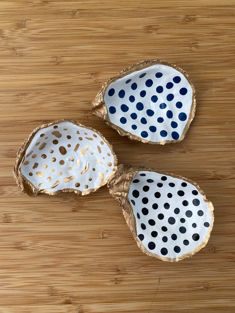 Hand-painted Oyster Shell Ring Dish: Gold Rim, Polka Dot Jewelry Holder ...
