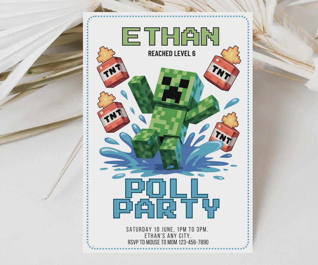 Minecraft Pool Party Birthday Invitation | Kids Birthday Invitation ...