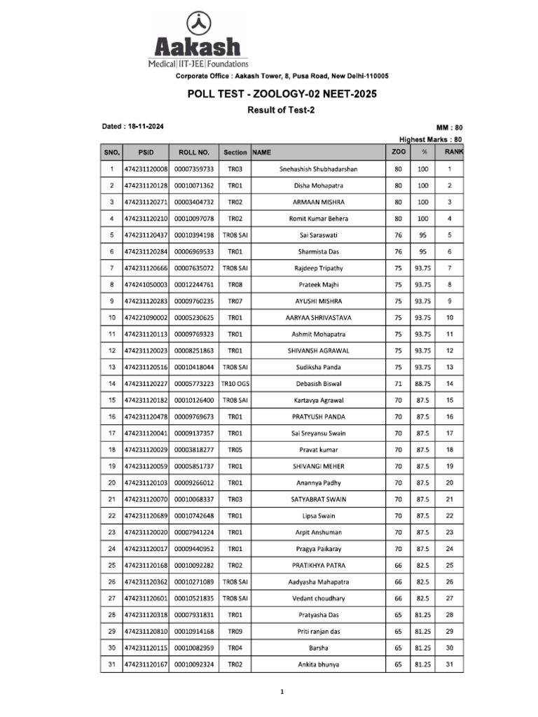 Result For Poll Test Zoology - 02 | PDF