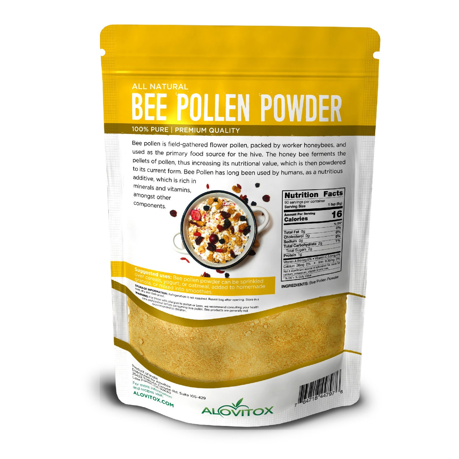 Pure Bee Pollen Powder 16oz by Alovitox - Protein Rich, Powerful ...