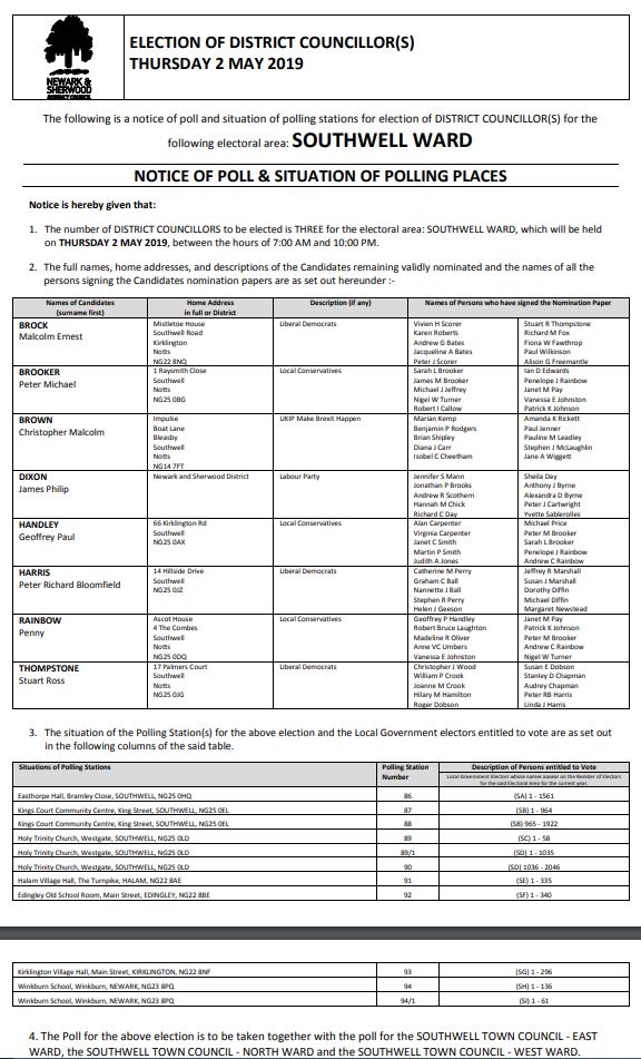 District Election Polling Notice NSDC Southwell Ward – Southwell Town ...