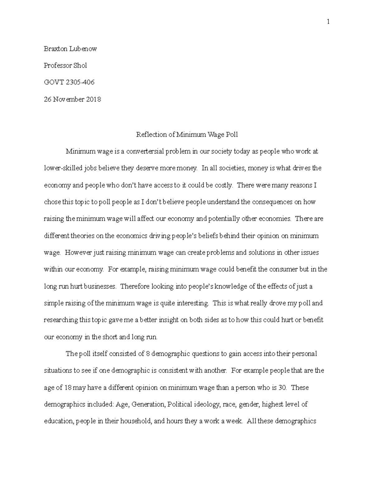 GOVT 2305 Polling Project Example 2C - Braxton Lubenow Professor Shol ...