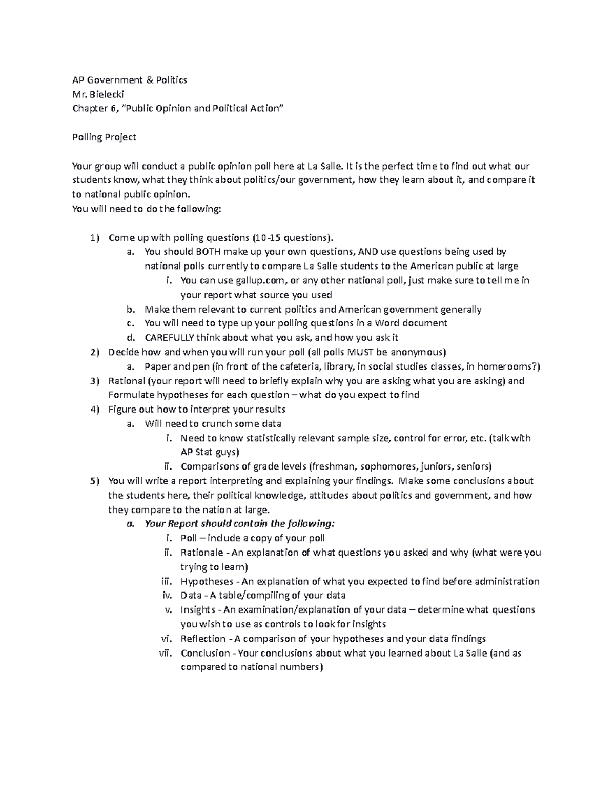 AP Government Polling Project: Insights on Public Opinion at La Salle ...