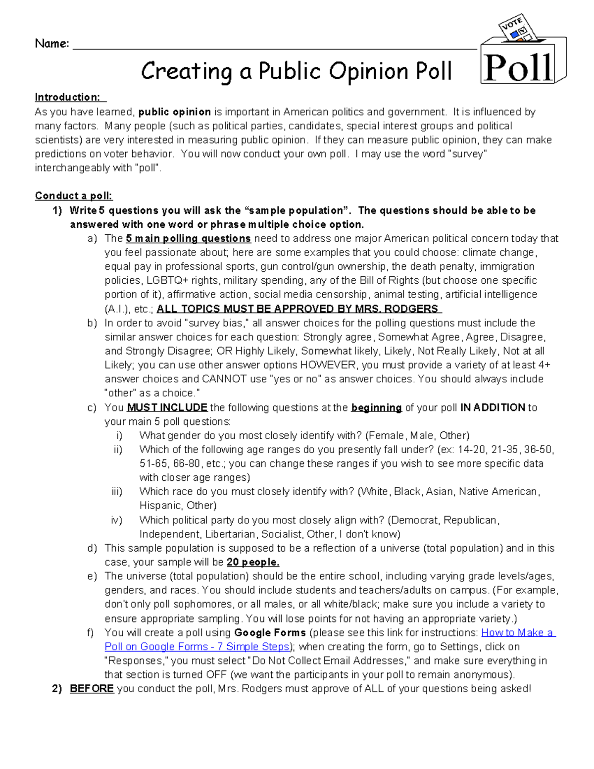 Public Opinion Poll Project - AP US Government by MrsTaylorClark