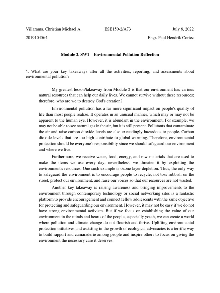 Environmental Pollution Reflection Insights | PDF | Wellness | Science ...