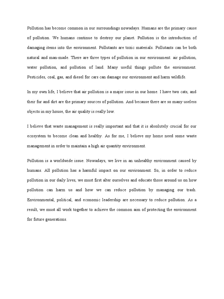 Reflection Essay on Water Pollution (500 Words) - PHDessay.com