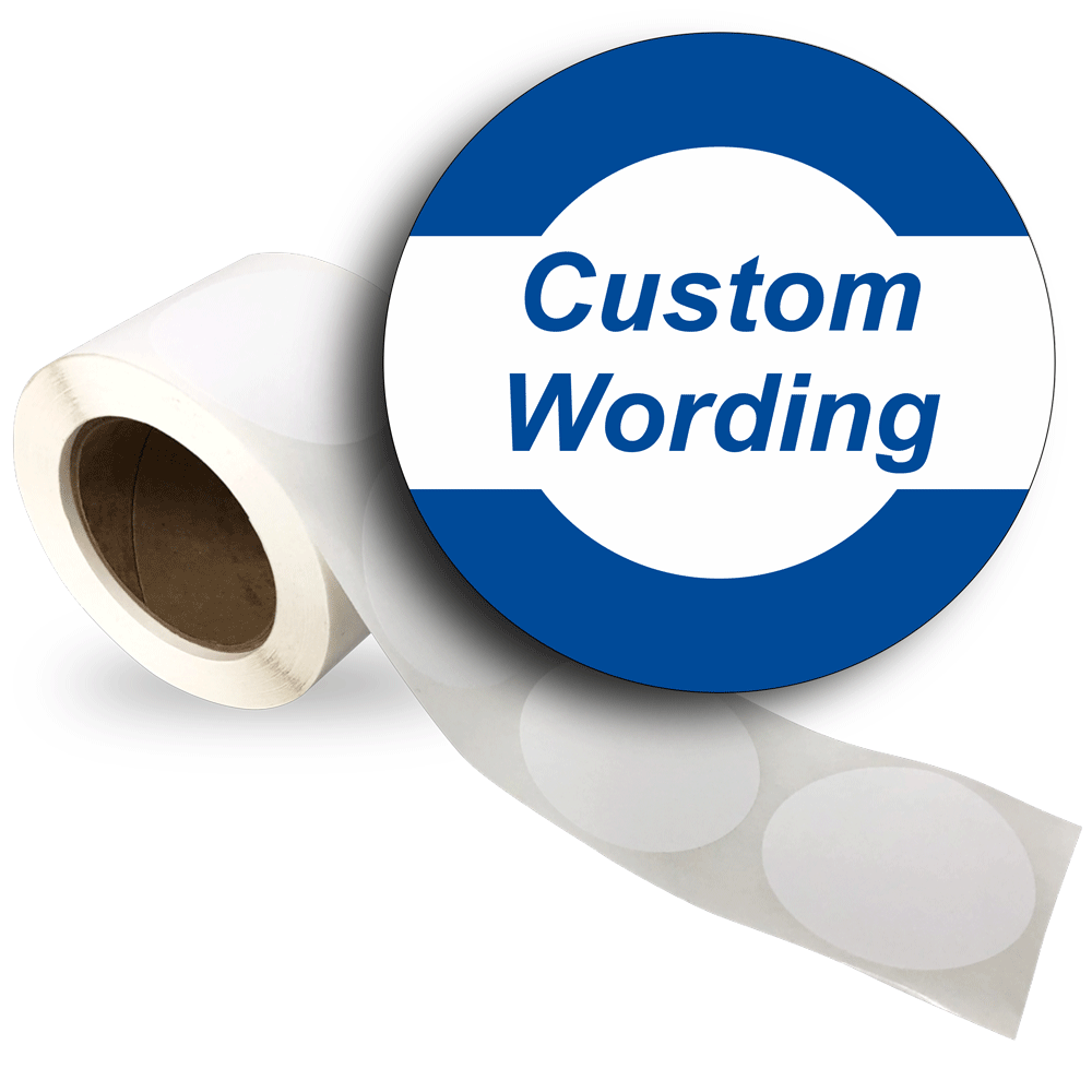 Custom Poly Labels on a Roll - Your Text - Blue on White Band