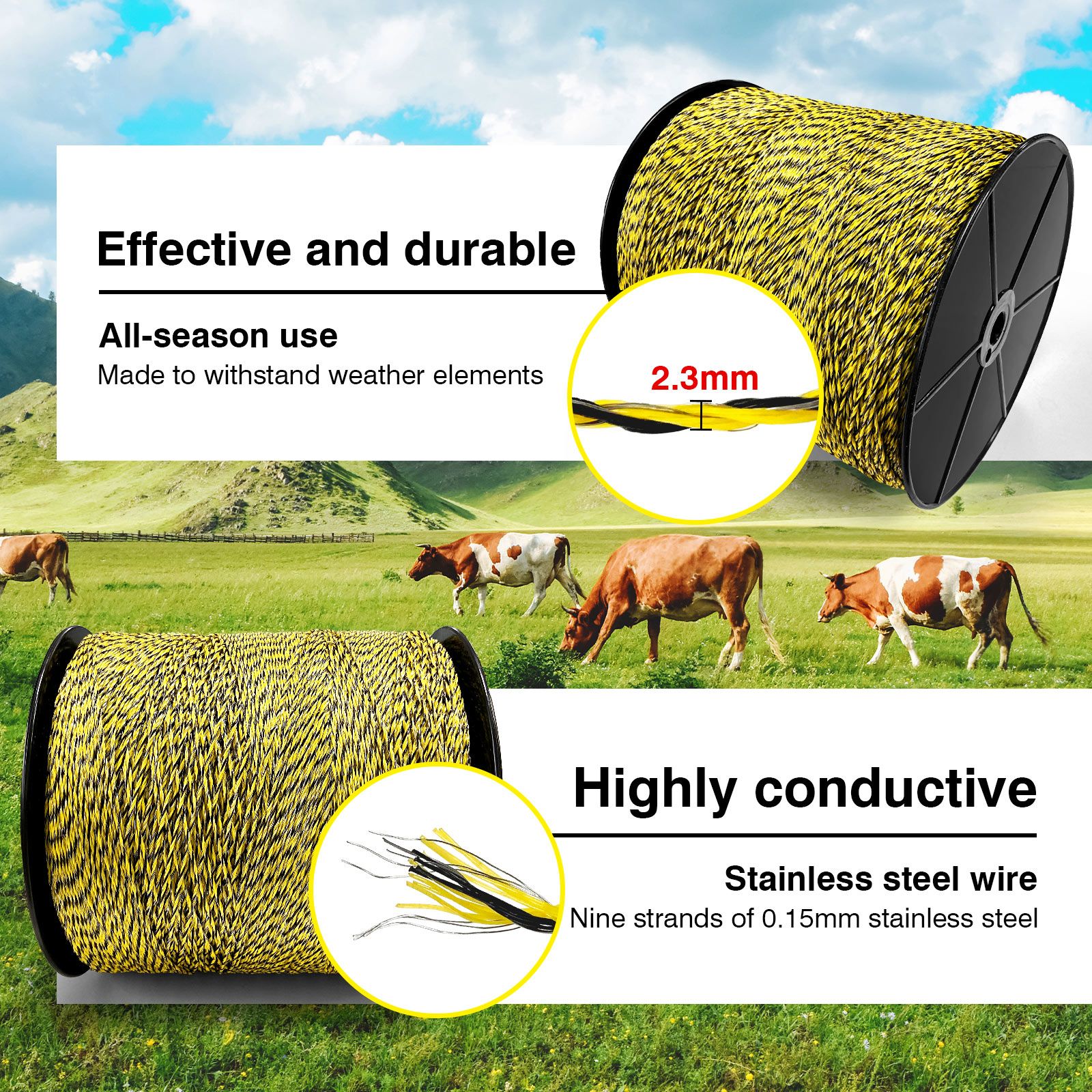 Upgrade Electric Fence Polywire 3285FT,1000 Meters, 6 Stainless Steel ...