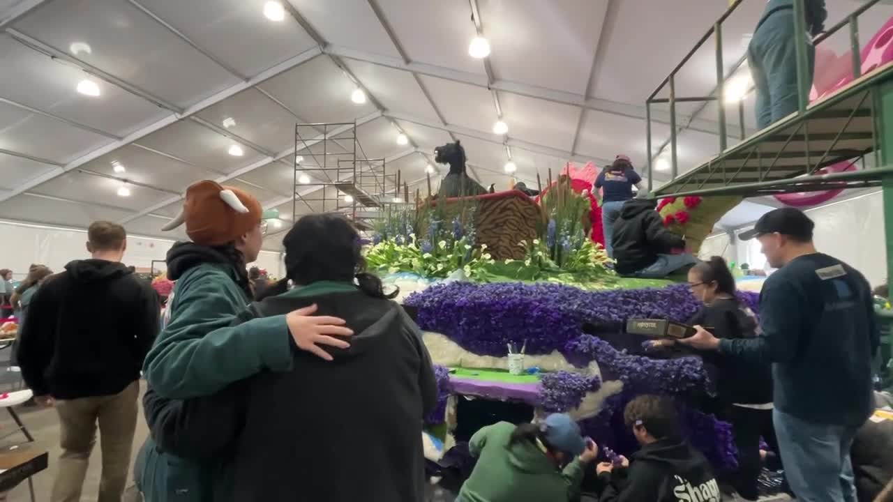 Cal Poly students battle rain as 2026 Rose Parade float nears debut