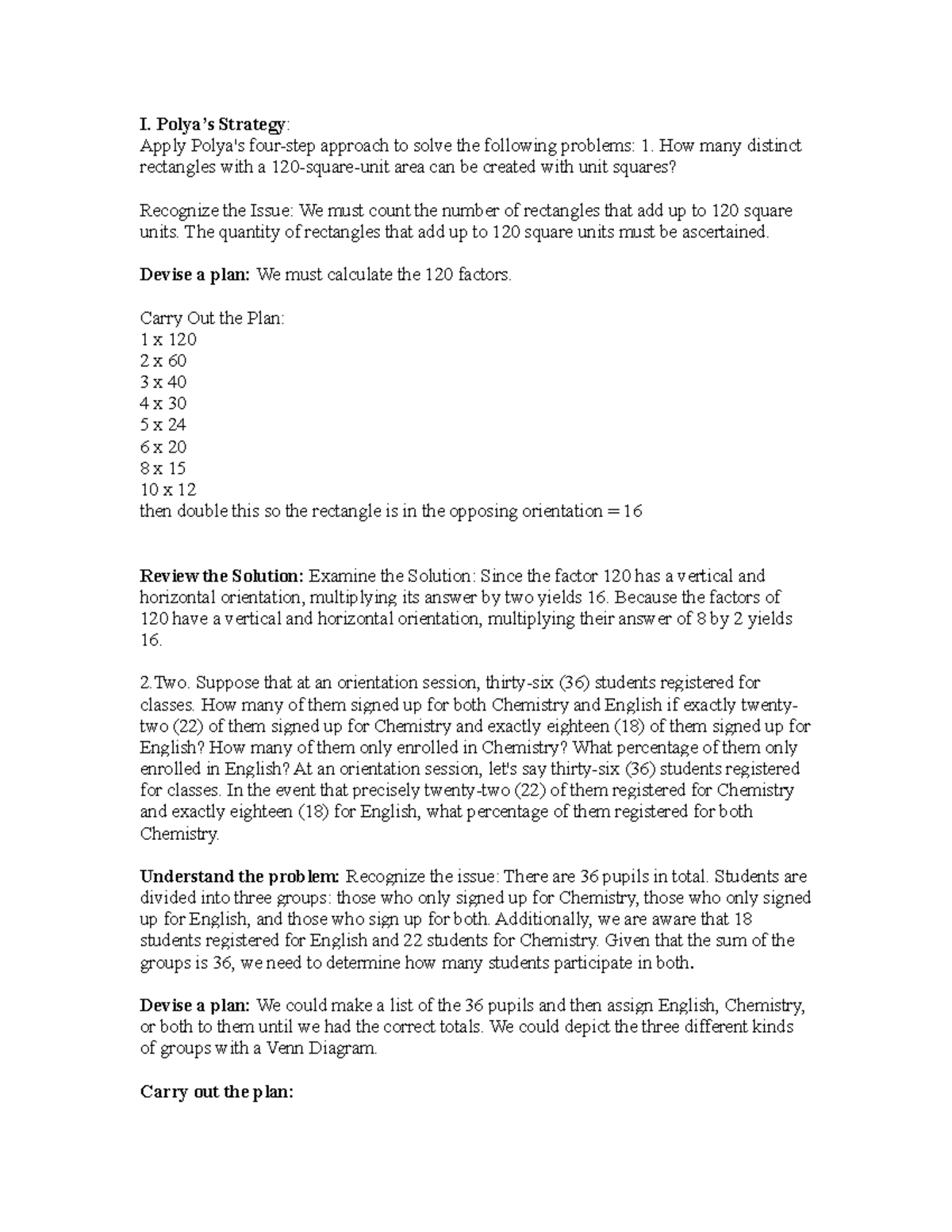 Yeah - I. Polya’s Strategy: Apply Polya's four-step approach to solve ...