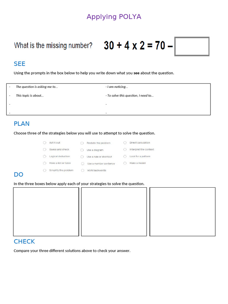 Polya's Problem Solving Steps | PDF | Equations | Cognitive Science