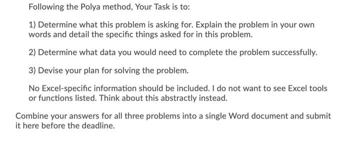 Solved Following the Polya method, Your Task is to: 1) | Chegg.com