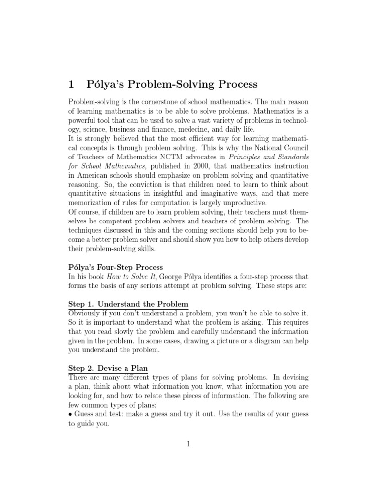 Section1 Polya Problem Solving Process | PDF | National Council Of ...