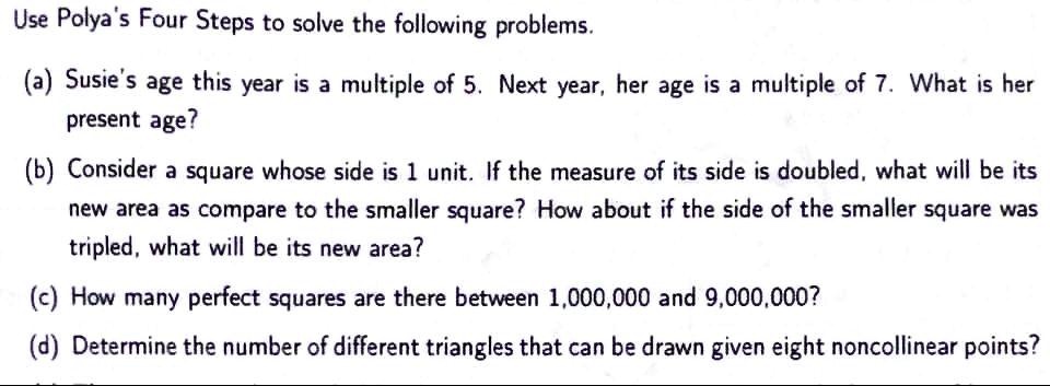 Solved 1. Polya's Strategy Use Polya's four-step | Chegg.com