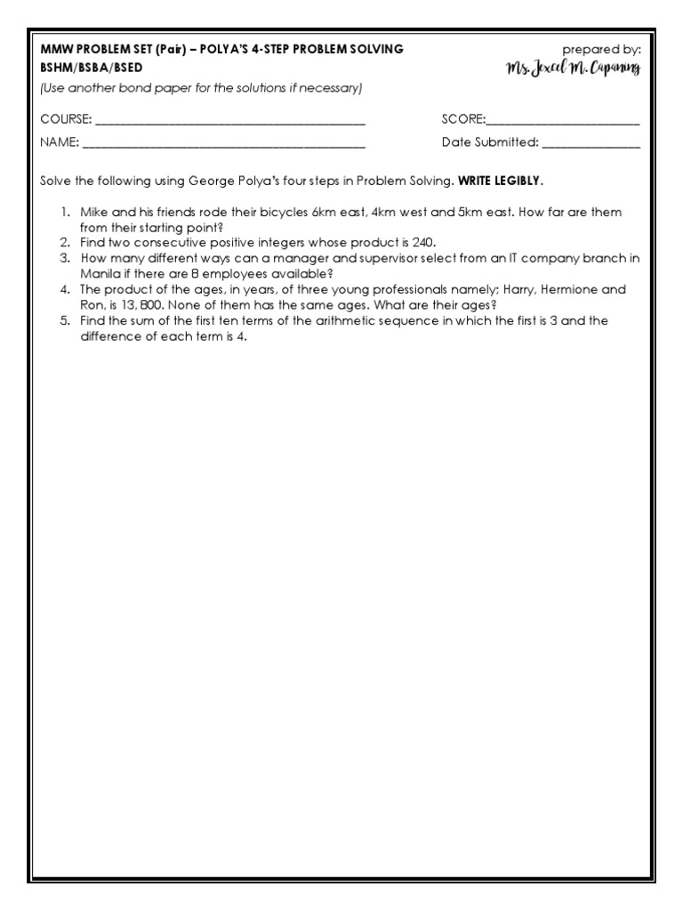 Some Examples Polya's 4-Step Problem Solving .pdf - Some | Course Hero