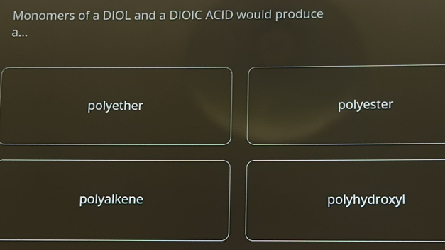Solved: Monomers of a DIOL and a DIOIC ACID would produce a ...