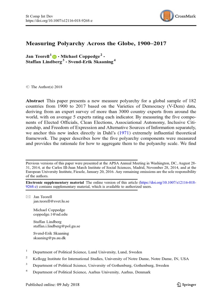 Measuring Polyarchy Across the Globe, 1900–2017 | SpringerLink