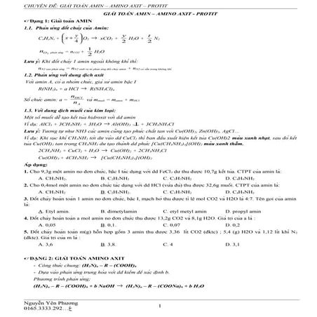 Tính chất hóa học, vật lí của Amino acid và Peptide, khái niệm, danh ...