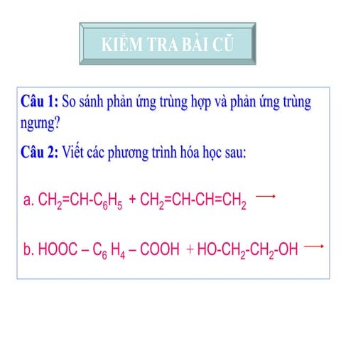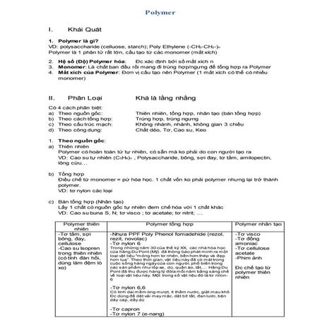 Cho các polymer: poly(vinyl chloride), cellulose, polycaproamide ...