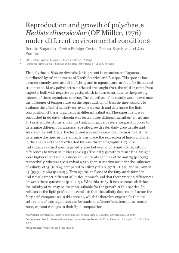 (PDF) Reproduction and growth of polychaete Hediste diversicolor (OF ...