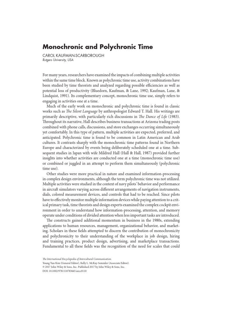 Cultural Perceptions of Time in Organizations: Monochronic and ...