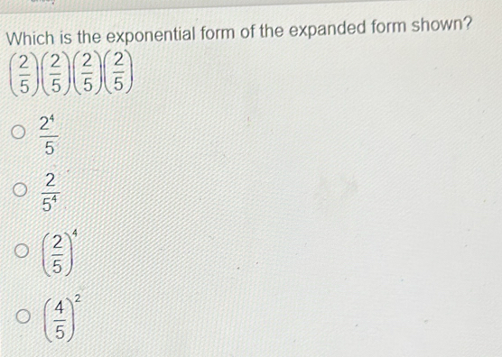 Solved: Which is the exponential form of the expanded form shown? ( 2/5 ...
