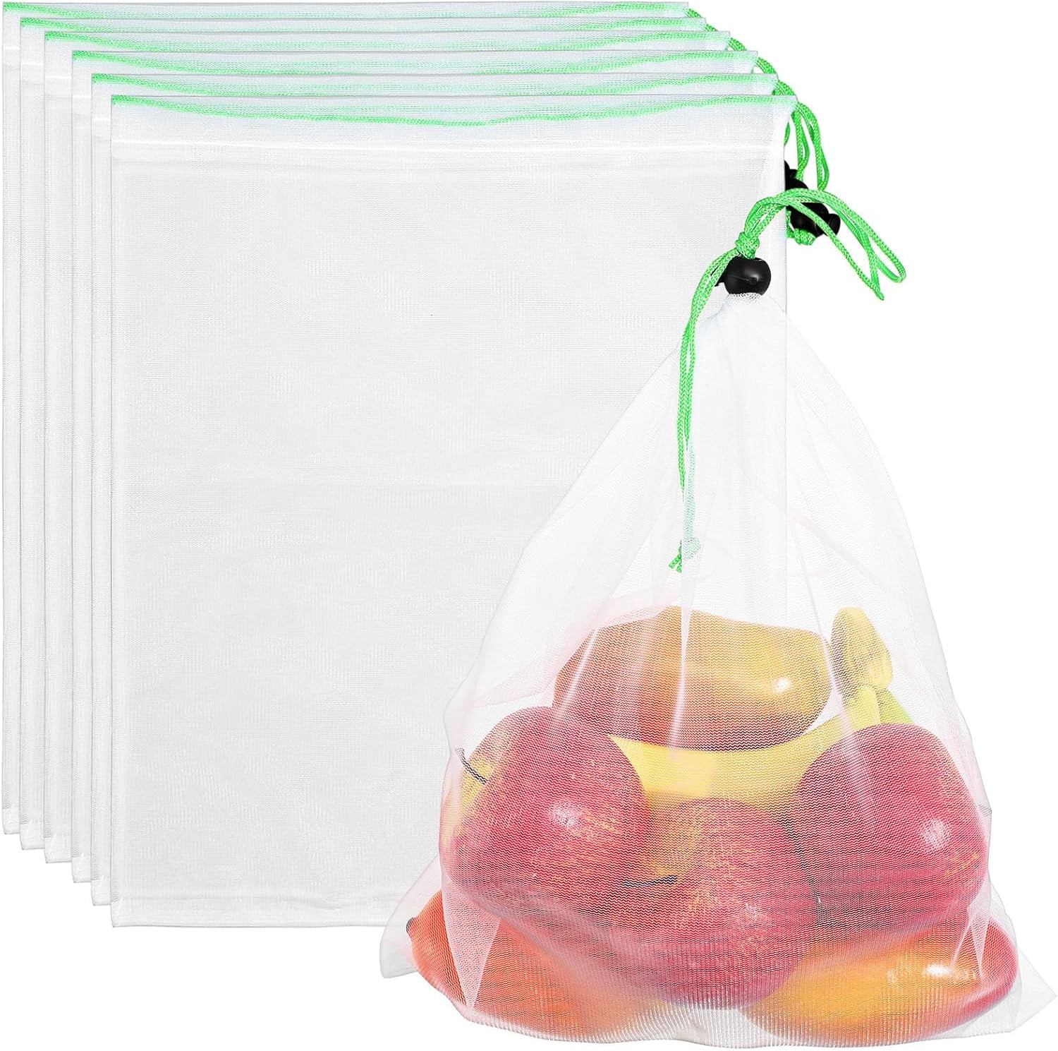 6pcs Reusable Fruit Netting Bags Drawstring Mesh Produce Bags 30x35cm ...