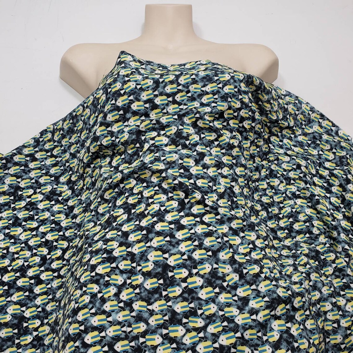 Small Fish Print Polyester Non Stretch Fabric - Fluky Fabrics Online Shop