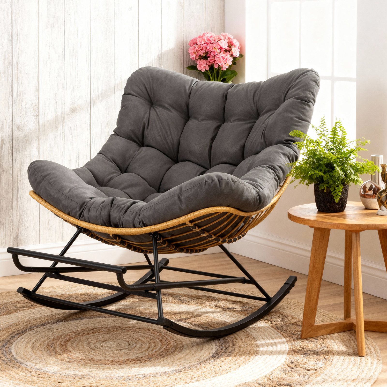 Oversized Egg Rocking Chair with Thick Padded Cushion - Hand-Woven PE ...