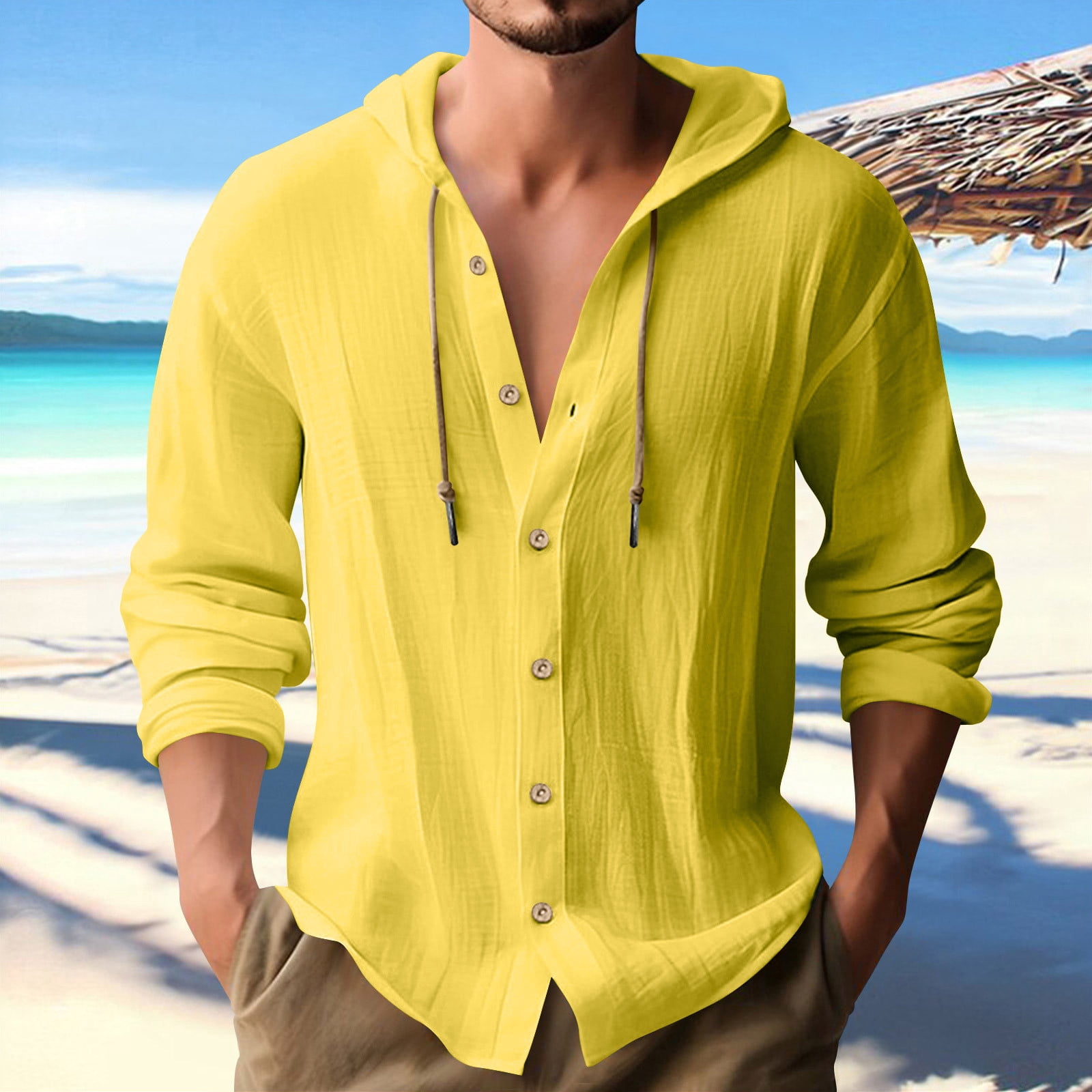 Fwqbns Men's Casual Solid Button Round-Neck Long Sleeve Hooded Blouse ...