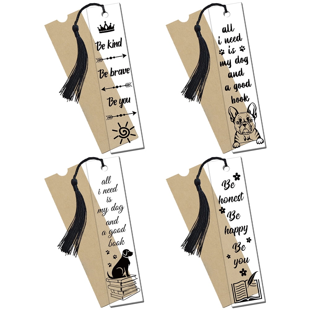 4Pcs Acrylic Bookmarks Rectangle 4Pcs Paper Bags 4Pcs Polyester Tassel ...