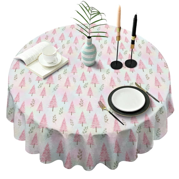Christmas Tree Floral Pastel Pattern Round Tablecloth, Fits 60-Inch ...
