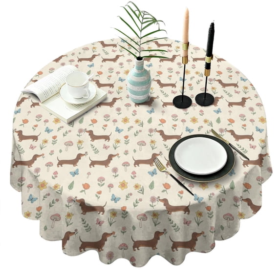 Dachshund Forest Floral Beige Pattern Round Tablecloth, Fits 60-Inch ...