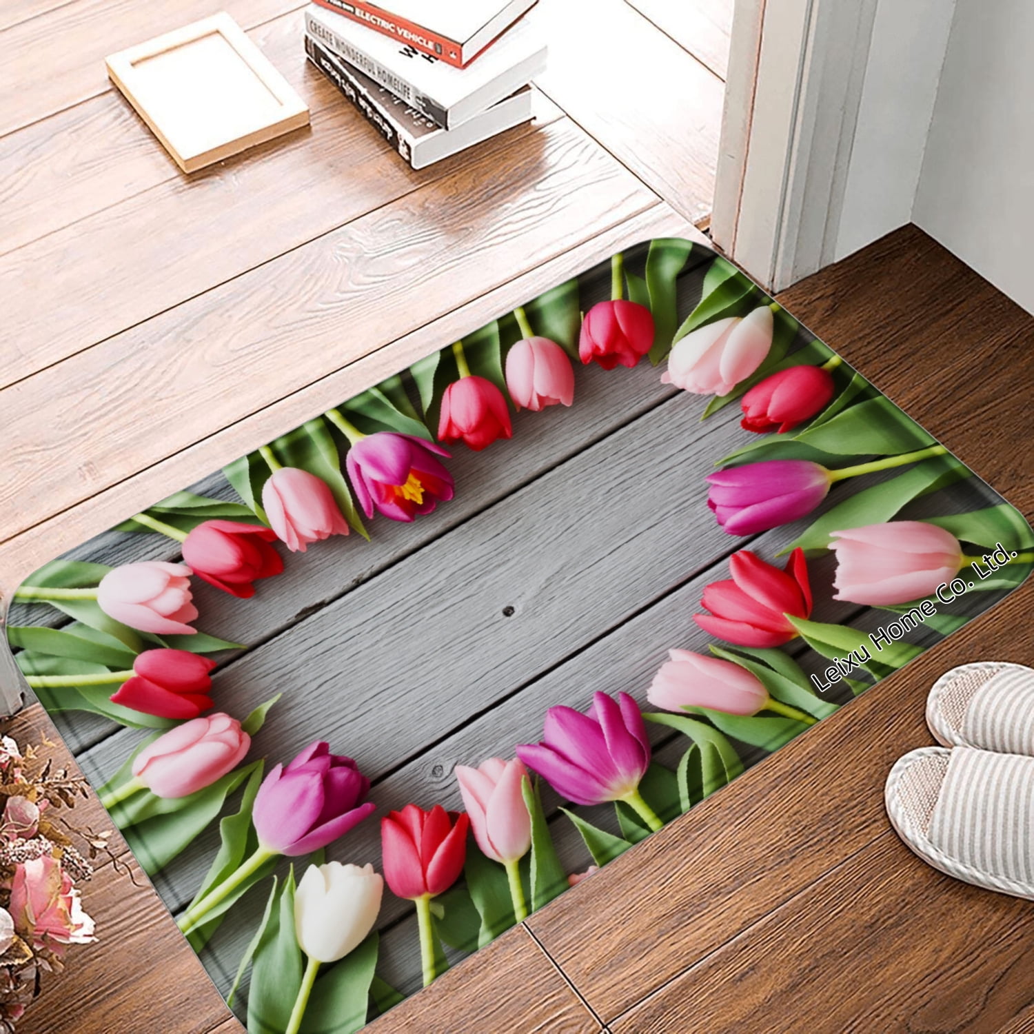 FJPT Non Slip Flannel Polyester Floor Mat With Tulip Design For ...