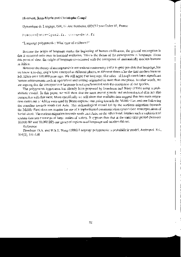 (PDF) Language polygenesis: what type of evidence?
