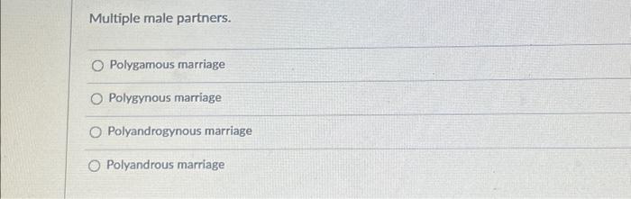 Multiple male partners. O Polygamous marriage O | Chegg.com