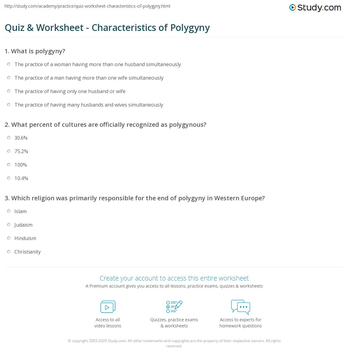 Quiz & Worksheet - Characteristics of Polygyny | Study.com