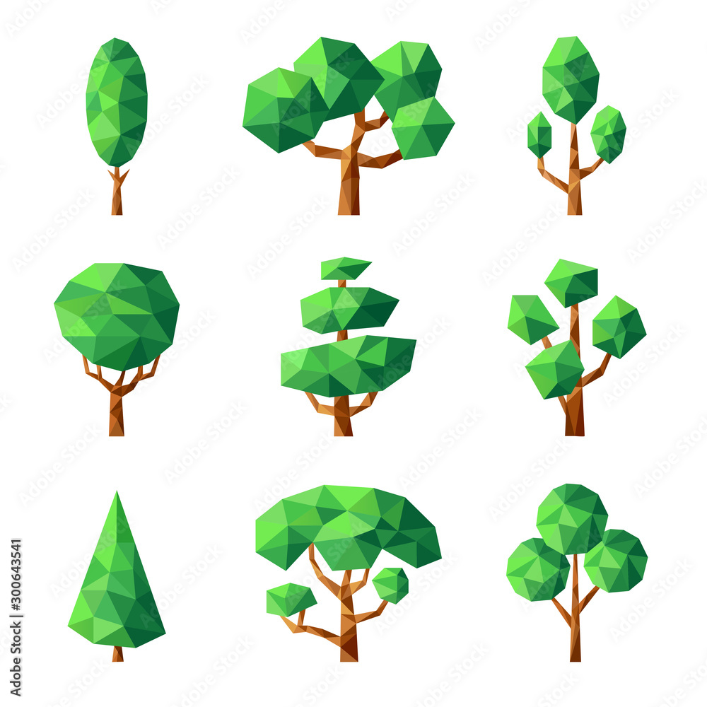 Premium Vector | Set polygonal trees with different crowns. abstract ...