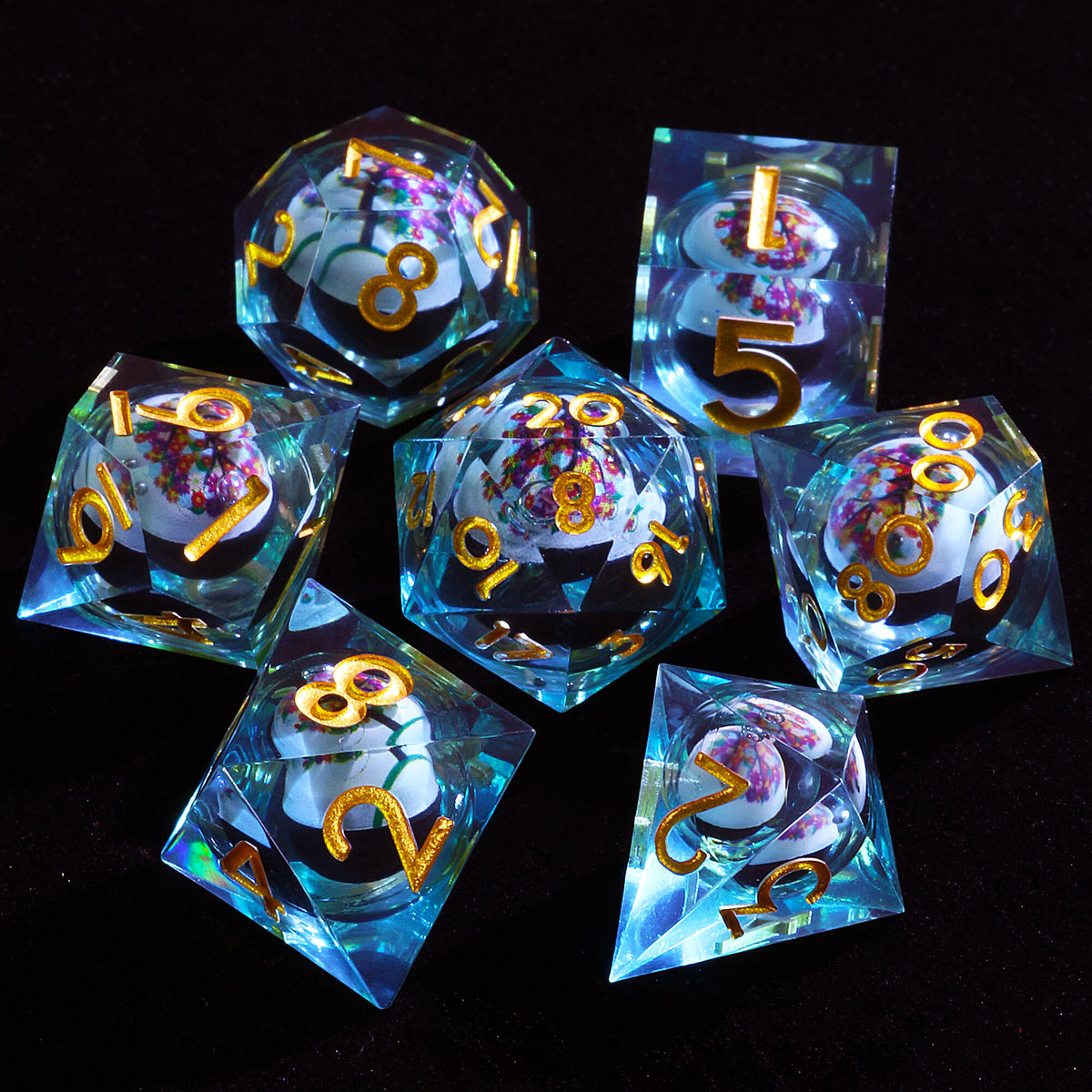 Polyhedral Cool Liquid Core DD Set of Dice Flower Tree
