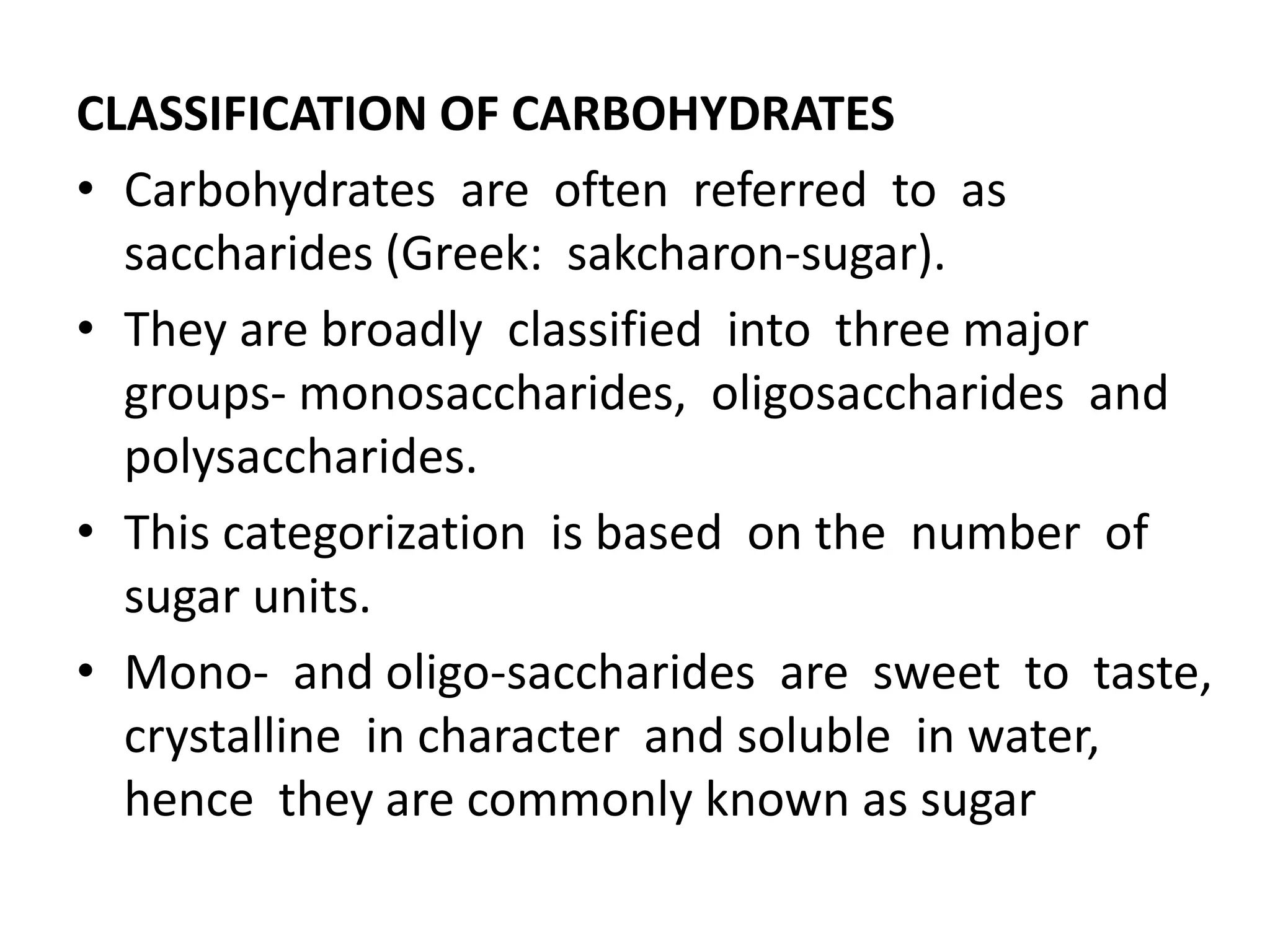 Classification of Carbohydrates Monosaccharides or simple sugars ...